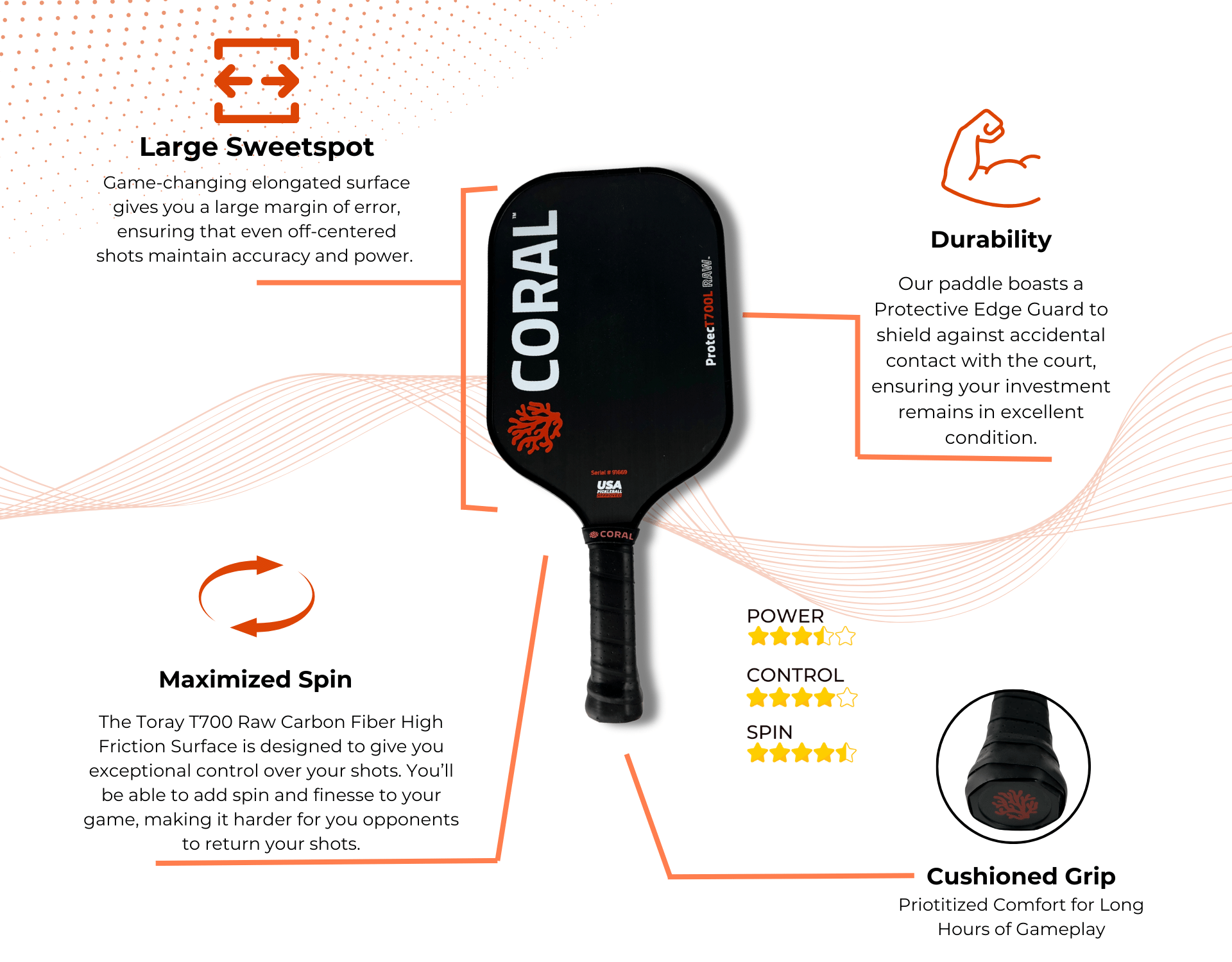 Coral ProtecT700L RAW pickleball paddle – it's not just a paddle, it's a game-changer, with its raw power and finesse, it's like wielding a secret weapon on the court that'll take your game to the next level and have you dominating like a true champ!